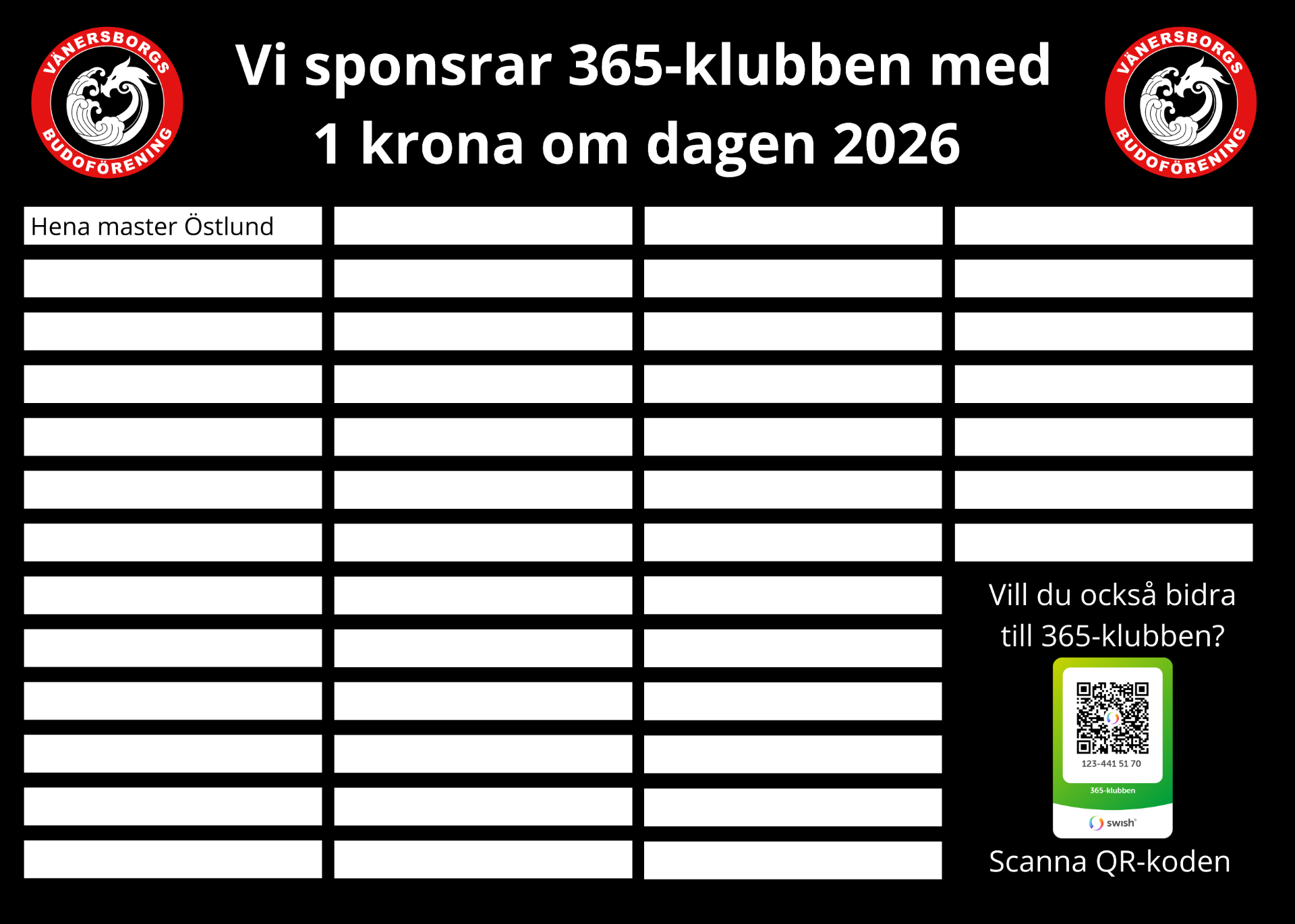 Vill du bli en del av 365-klubben och bidra till Vänersborgs Budoförening?